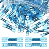 500 Pcs Blue Heat Shrink Butt Connectors, 16-14 AWG Waterproof Electrical Crimp Wire Splice Automotive Marine Grade Crimp Terminals Butt Splices for Boats Industrial Cable Wiring