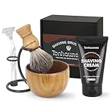 Shaving Brush Kit For Men, 4 In 1 Shaving Brushes Set Includes Badger Hair Shaving Brush, Wood Bowl, Shaving Cream and Stainless Steel Shaving Holder