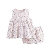 Girls Comfort Cotton Summer 2 Piece Outfits Floral Print Sleeveless Babydoll Top Matching Shorts Set for 0-6 Years