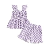 Toddler Baby Girls Summer Outfit Fashionable Plaid Flying Sleeve Ruffle Tops with Shorts 2Pcs Set (Purple, 6-12 Months)
