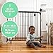 - Adults can easily open the toddler gate one-handed; the door opens the entire width of the gate so it's easy to walk through and the no-threshold design minimizes tripping
