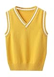 JiaYou Girls Boys Sweater Vest Unisex Cable Knit Cotton Uniform Vest(Yellow,11 Years)