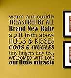 Warm and Cuddly Treasured by All Brand New Baby... Vinyl Wall Decals Quotes Sayings Words Art Decor Lettering Vinyl Wall Art Inspirational Uplifting