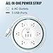 <p><b>TP® UFO 6-Outlet Surge Protector Clear-Blue Round Power Center, 3 Quick Charging USB Ports, 4-Ft Heavy Duty Power Cord, UL Listed;</b></p> <p><b>1080 Joules Suppression Rating and Improved Component Performance</b></p> <p>TP® Power strip prevent strong surges from damaging your valuable electronics. Including both full normal mode (L-N)and common mode (L-G/L-G) line surge suppression.</p> <p>Continuousduty electrical rating: 15A/125V/1875W</p> <p>Type3SPD: MOV:127VAC  In:3kv  ; VPR: L-N:0.4kv  L-G:0.5kv  N-G:0.5kv</p> <p><b>EMI-/RFI-Filter</b></p> <p>Various electromagneticand radio sources found in virtually every home and business can causedisruptive interference on the AC line. Known as EMI (electromagneticinterference) and RFI (radio frequency interference),this line noise is acommon cause of performance problems and can lead to incremental hardwaredamage and data corruption. TP® Power strip in corporate technology thatfilters out disruptive line noise for peak performance of your components.</p> <p>Noise reduction:Up to 40 dB</p> <p><b>Special Round-Space desgin</b></p> <p>Special Design six Round-Space outlets,it can accommodate larger power adapters -- like over sized printer and charger plugs -- without blocking other outlets.</p> <p><b>Auto-adjust 3USB ports</b></p> <p>3USB portsn allowing you to consolidate all your charging needs into one safe and reliable charging plate station.Auto-adjust charginglets everyone in your house hold charge any USB powered device at full speed& maximum efficiency.</p> <p> Single port: 5V- 2.1A(TYP);Triple  ports:5V-3.1A TYP);</p> <p><b>Heavy-duty power cord</b></p> <p>4-foot 14AWG power cord.Its heavy-duty design helps protect the cord from damage andensures optimal power flow to your devices.</p> <p><b>Safety Certification: UL1363,UL1449,UL1310</b></p>