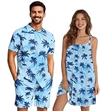 Belidome Palm Tree Romantic Matching Pajamas Set Couples Soft Couples Loungewear Shorts Set for Him and Nightdress for Her Couple Outfits Light Blue Navy Summer Clothes Spring Tops L