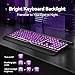 - 【7-Color Smart Backlight】 The large print backlit keyboard offers 7 lighting modes with three brightness levels. You can also switch between breathing light mode and constant lighting mode to match your preference. Choose white light at medium brightness for enhanced focus during work, or use amber light at low blue light levels to protect your eyes at night. This feature personalizes your workspace while enhancing its aesthetics
