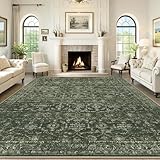 Washable Area Rug 8x10 Green Rugs for Living Room, Vintage Boho Large Rug for Bedroom Dining Room Office, Distressed Floral Print Carpet for Under Table, Soft Non Slip Low Pile Throw Carpet Indoor Mat