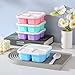 - Cost-effective Snack Containers Pack of 4:You will receive bento lunch box pack of 4, with 4 colors - pink, purple, blue and green. The size is approximately 6.7 x 6.1 x 2.2inches. Sufficient quantity and style of lunch containers can meet various daily needs, three perfectly portioned compartments can balanced distribution of food without confusion. Snackle box containers suitable for school, office, camping and travel