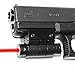 TRINITY Red laser features: Weaver Mount will easily clamp onto Handguns that have a Weaver Style Accessory Rail Under the Barrel. Fully adjustable for Windage and Elevation On/Off Rear Cap Switch is easily turned On or Off with your trigger finger All Aluminum Construction 635-655nm Red Laser Beam <5mw Specially designed Weaver style mount Standard on/off cap switch Includes 3 AG13 Lithium type batteries and mounting tool Dimensions (inches): 1.61Lx1.04 Wx1.19H Weight: 1.2oz. with batteries.