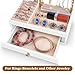 - ♔[Multifunctional Wood Storage Base]: The white box base as a jewelry tray for added accessory storage. It can be used as earring holder, ring tray, bracelet holder, or watch holder. The drawers lined with fine linen to keep your jewelry from scratching.The pull-out drawer is designed for small things such as lipsticks,watches,glasses,skin cream bottles , hair accessories and so on.