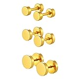 18K Gold Plated Round Stud Earrings for Men Women Cartilage Ear Piercing Plugs Tunnel Fashion Jewelry