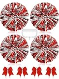 Jexine 8 Pcs Cheerleading Pom Poms with Large Cheerleader Hair Bows Metallic Cheer Metallic Cheer Supplies for Dance Team Spirit Sports Carnival Celebration(Red)