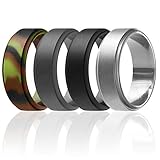 ROQ Silicone Rubber Wedding Ring for Men, Comfort Fit, Men's Wedding Band, Breathable Rubber Engagement Band, 8mm Wide 2mm Thick, Step Edge, 4 Pack, Silver, Camo, Grey, Black, Size 9