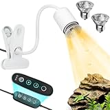 GOZILLA Reptile Heat Lamp, Turtle Lamp with 360° Goose Neck Rotatable Timing & Dimming Cycle Timer, 25W+50W UVA/UVB Reptile Light Bulbs for Reptiles and Amphibian Tanks, Terrariums and Cages.(White)
