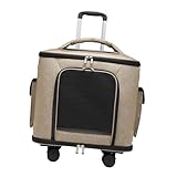 Cat Carrier Handbag Pet Rolling Carrier with Universal Wheels for Large Cats Puppy, Khaki