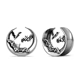 ERKUOO 2PCS Gothic Bat Ear Tunnels 6mm–25mm Open Saddle Plugs Gauges Double Flare Stretching Piercing Jewelry for Women Men Alternative Festival Fashion