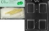 Cybrtrayd Plain Krispy Treat Rectangle Bar All Occasions Chocolate Candy Mold with Packaging Bundle of 25 Cello Bags, 25 Gold Twist Ties and Chocolate Molding Instructions