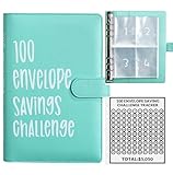100 Envelopes Money Saving Challenge, 100 Envelope Challenge Binder, Easy and Fun Way to Save $5,050, Savings Challenges Budget Book Binder with Cash Envelopes for Office,Home,School (Green)