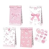 24 Pcs Adorable Pink Bow-Themed Gift Bags with Assorted Patterns & Stickers,Perfect for Birthdays, Parties, Weddings, and All Celebrations
