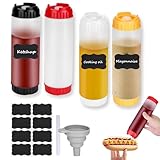 CHAQiWi 4pcs Inverted Condiment Squeeze Bottles, Leak-Proof Refillable Sauce Container for All Types Liquid, Plastic 24OZ FIFO Squeeze Dispenser for Ketchup Mustard Mayo Honey Syrup Oil
