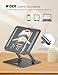 - ADJUSTABLE & ERGONOMIC DESIGN:Adjustable from 0° to 90°, our ergonomic laptop holder caters to various user needs, improving posture and alleviating back pain, neck stiffness, wrist discomfort, and eye strain, while promoting optimal posture