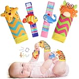URMYWO Wrist Rattles for Baby - Rattle Socks - Foot Finder Set - Baby Toys for 0-12 Months Infant - Newborn Essentials - Early Learning Sensery Toys for Boys and Girls as Shower Gifts Valentines Gifts