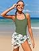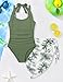 Tomolant Girls Swimsuit, Girls Swimsuits Size 10-12 Halter Neck One Piece Bathing Suit with Tropical Printed Cover Up Skirt Adjustable Strap Teen Bathing Suits Swimwear Set Olive Green