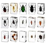 15pcs Preserved Insects, Taxidermy Bug Insect Specimens in Resin for Closer-Look & Study, Science Classroom Specimen Educational for Teaching Home Office Display Decor (Small 15pcs Insects)