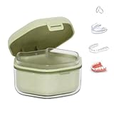 Retainer cleaner case, denture cup for soaking dentures, leak proof denture box, equipped with tool compartment, safe materials, easy to clean, Green