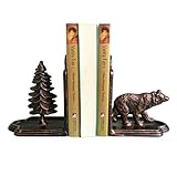 Bear Bookends Decorative, Heavy Duty Cast Iron Book Holder, Bear and Tree Book Ends for Shelves Living Room Home Decor Office, Antique Bronze, 1 Pair/2Pieces