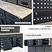 - Massive Tiered Storage Space: This 72-inch rolling tool chest comes with 11 drawers of 5 different sizes, 3 upper cabinets, a 2-door cabinet and a pegboard, which provides a decent amount of storage space to keep a variety of tools organized. The 18-inch deep wood top also provides a spacious working surface.