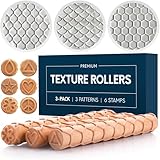 Byllstore Extra Large Clay Texture Rollers with Pottery Stamps | 3 Texture Rollers | 6 Clay Stamps | 3-Pack (9" x 1.2", 3 Pack)