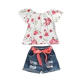 Gureui Toddler Baby Girl Spring Summer Clothes 2-3T Short Sleeve Flower T-Shirt Jean Shorts 2-3 Year Denim Outfits