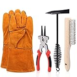 Rustark 4 Pcs Wire Scratch Brush Slag Removal Tool Set Contains 10 Inch Welding Chipping Hammer, Welding Mufti-Functional Pliers, Wire Brush, Welding Gloves for Cleaning Removing Slag