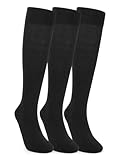 HiColorful Knee High Support Socks for Women & Men – 65% Cotton Stretch Fit – Breathable Snug Fit Socks for Work Travel Daily Wear – Soft Lightweight All Black Large-3 Pairs