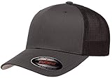 The Hat Pros Flexfit 6511 Fitted Mid-Profile Stretchable Mesh Panels Trucker Cap - One Size - Charcoal/Black