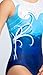 Oceanic Swirl Girl's Gymnastic Leotard: This stunning ocean-themed leotard features a deep blue and white swirl pattern reminiscent of waves, with a tank style and scoop neck that offers a comfortable, flexible fit. Made from breathable, high-performance fabric, it remains vibrant and durable through intense training and multiple washes. Crystal accents add a sparkling touch, perfect for gymnasts wanting a standout look.