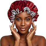 Pretty Robes Silk Hair Bonnet for Sleeping, Reversible Bonnets for Black Women, Curly Hair Women Accessories (Burgundy-Silver)