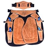 Equine Care Farrier Apron Chaps – Cowhide Suede Leather & Canvas, Adjustable Waist 28"-52" with Back Support, Tool Pockets & Nail Magnets – 23", 25", 27", 29" for Horse Shoeing (29 inches (75 cm))