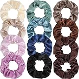 12 Pcs Satin Silk Scrunchies – Soft Hair Ties for Women & Girls, Thick Elastic Ponytail Holders, Hair Bands & Wrist Bracelets, Assorted Colors Scrunchies Hair Ties Silk Satin Scrunchy Hair Accessories
