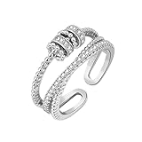 Titanium Steel Spinner Ring, Cubic Zirconia Eternity Band Fidget Ring for Women Men, Rotatable Anxiety Relief Ring with Sizes 5-10(All,7)