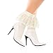 Violet Mist Lace Ruffle Anklet Socks - Cute White Frilly Cotton Crew Socks With Lace Ruffles Trim Fringe - Fashion Princess Lolita for Women Ladies Girls - Goth Solid Color Dress