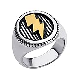 555Jewelry Classic Stainless Steel Ring - Lightning Seal Signet in Silver & Gold, Size 10