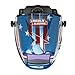 - <b>Price For:</b> Each <b>Includes</b>: Helmet Bag, Bandana, Lenses <b>Features</b>: 4C(TM) Lens Technology, Optical Clarity, Wide Screen View <b>TIG AMP Rating</b>: 2A <b>ADF Controls</b>: Knobs <b>Number of Arc Sensors</b>: 4 <b>Color</b>: Blue/Red/White <b>Grind Mode</b>: Yes <b>Battery Type</b>: Solar Cells <b>Lens Shade</b>: 5 to 13 <b>Viewing Area</b>: 3.74" x 3.34" <b>Welding Helmet Material</b>: Nylon, Polycarbonate <b>Graphics</b>: American Flag