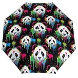 CWECVWE Compact Automatic Folding Umbrella, Sun Rain Protection Black Coating, Fashion Printed Style, Unisex Essential for Camping Shopping Work Trips Splash Ink Panda