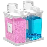 Hordely 61OZ Laundry Detergent Dispenser Container, 2 Pack Liquid Laundry Dispenser, Plastic Detergent Dispensers for Laundry Powder/Fabric Softener with Labels/Tray, Clear