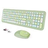 Wireless Keyboard and Mouse Combo, Colorful Ergonomic Full Size Retro Low-Noise Keyboard with Cute keycaps, Compatible with Windows, PC, Perfer for Home and Office Keyboards (Green)
