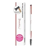 Bueart Design PRECISION ULTRA THIN Duo Angled Eyebrow Brush with Spoolie Eyelash Brush Professional Slanted Flat Angle Double Ended Eyeliner Brush and Spiral Mascara Brush (White & Rose Gold)