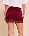 Women Satin Half Slips Lace Trim Hem Short Underskirt Low Rise Silk Floral Mesh Patchwork Flowy Mini Skirt(Wine Red,L)