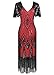 Women's 1920s Gatsby Inspired Sequin Beads Long Fringe Flapper Dress w/Accessories Set, Black&red, XX-Large